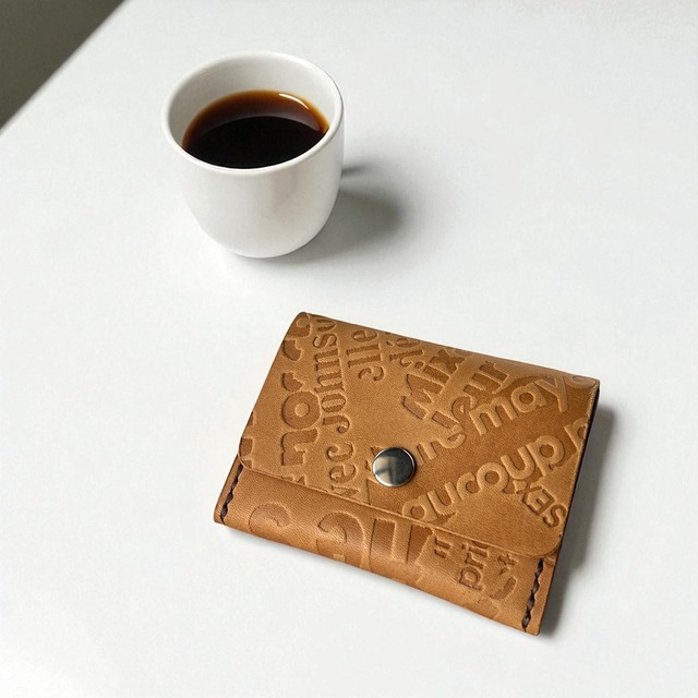 キャメルカラーの本革に英字柄の型押しを施した、コンパクトサイズのハンドメイドマルチケースです。 温かみのあるキャメルとユニークな英字柄が、おしゃれでカジュアルな雰囲気を演出。小さいながら存在感があり、毎日の持ち物に遊び心をプラスします。 日常使いはもちろん、ちょっとしたギフトにもおすすめのアイテムです。 【おすすめポイント】 おしゃれな英字柄デザイン:シンプルでありながら個性が光り、カジュアルにもナチュラルにも合わせやすい。 ポケットサイズで便利:小物やアクセサリー、常備薬などを持ち運ぶのにぴったり。 財布としても使える:お札は三つ折りにすれば収納可能。コンパクト財布を探している方に最適。 本革の質感を楽しめる:使うほどに風合いが増し、自分だけのアイテムに育っていきます。 【素材】 レザー(本革) ポリエステル製ワックスコード メッキ金具 【サイズ最大値】 畳んだ時:約 縦7cm × 横9cm × 厚み2cm 開いた時:約 縦13.5cm × 横9cm 【お手入れ・取り扱いについて】 水濡れはシミや劣化の原因となりますのでご注意ください。 使用後は柔らかい布で拭き、湿気の少ない場所で保管してください。 本革は天然素材のため、シワや傷跡、ムラなどが見られる場合がありますが、これも味わいのひとつです。 【ご購入時の注意点】 写真と実際の商品では色味が異なる場合があります。 サイズ違いによる返品・交換は承っておりませんので、事前にご確認ください。 英字柄は型押しの位置や濃淡に個体差がございます。