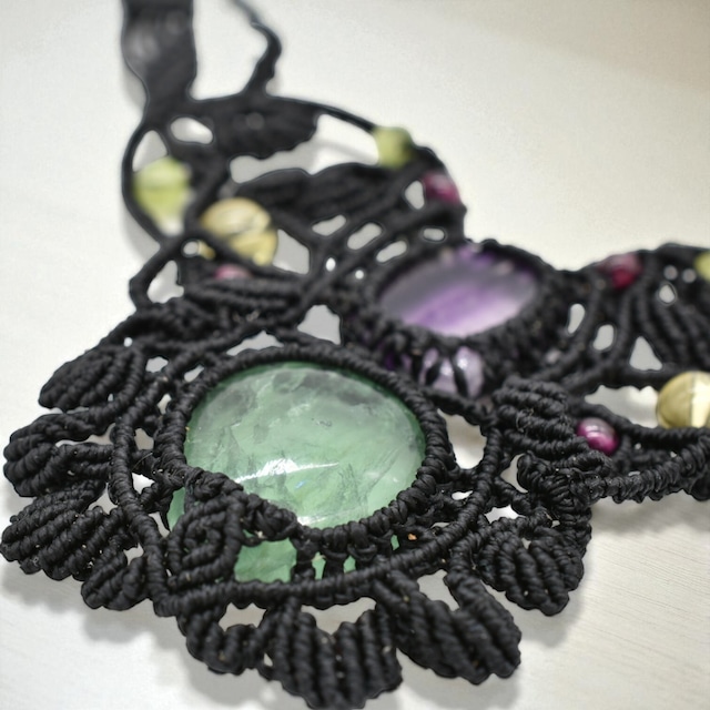 ナチュラルスタイルに映える|フローライト マクラメ編み天然石チョーカー|一点もの【送料無料】[P-117N]