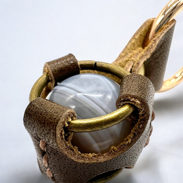 気持ちを静めたい日に|グレーアゲート×本革レザー キーホルダー|穏やかな縞模様の癒し