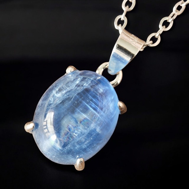 カイヤナイトの天然石ネックレス|深い青と透明感のペンダント|SV925・アレルギー対応チェーン【送料無料】[M-050N]
