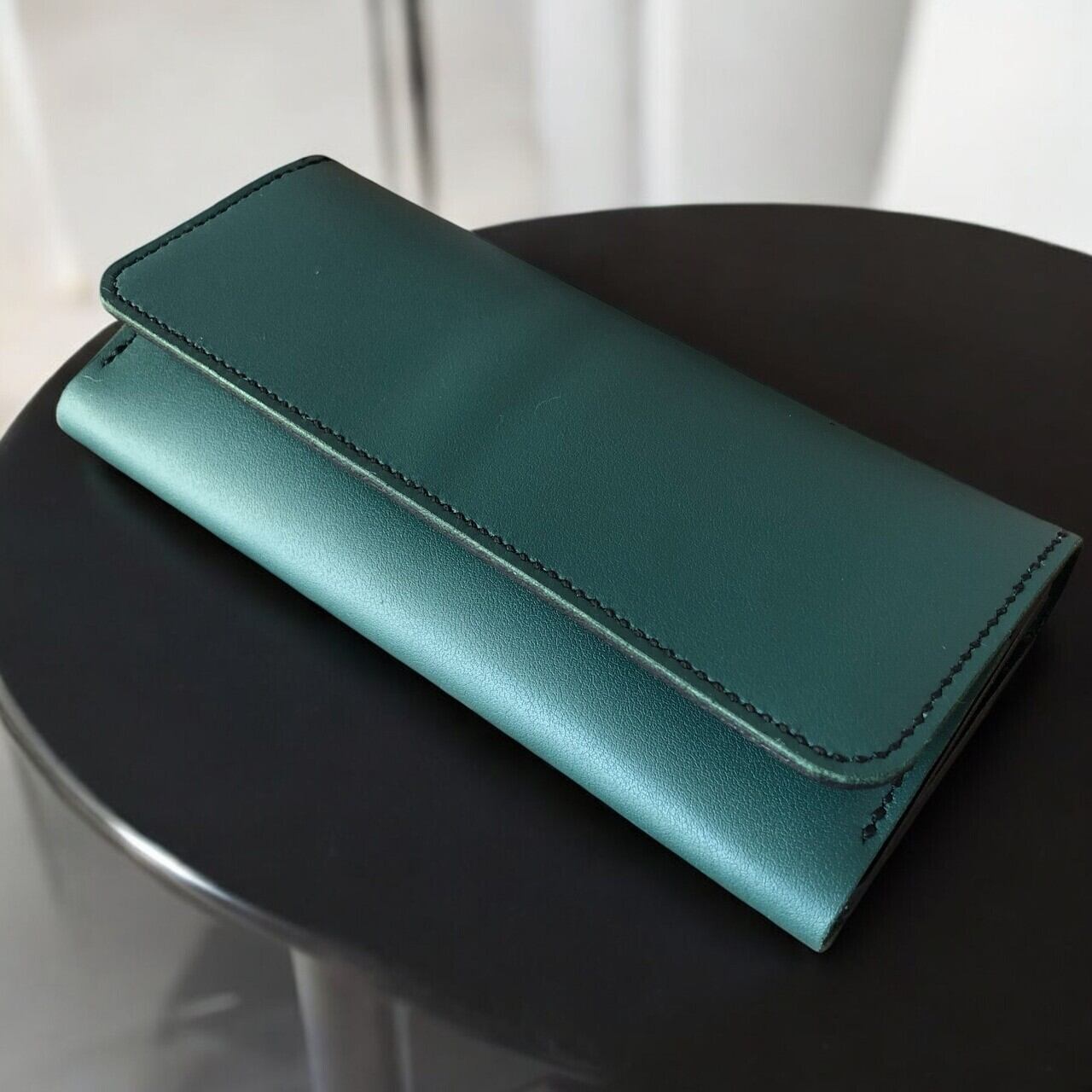 外側には落ち着いたグリーン、内側にはシックなブラックの本革を使用し、洗練された印象に仕上げました。