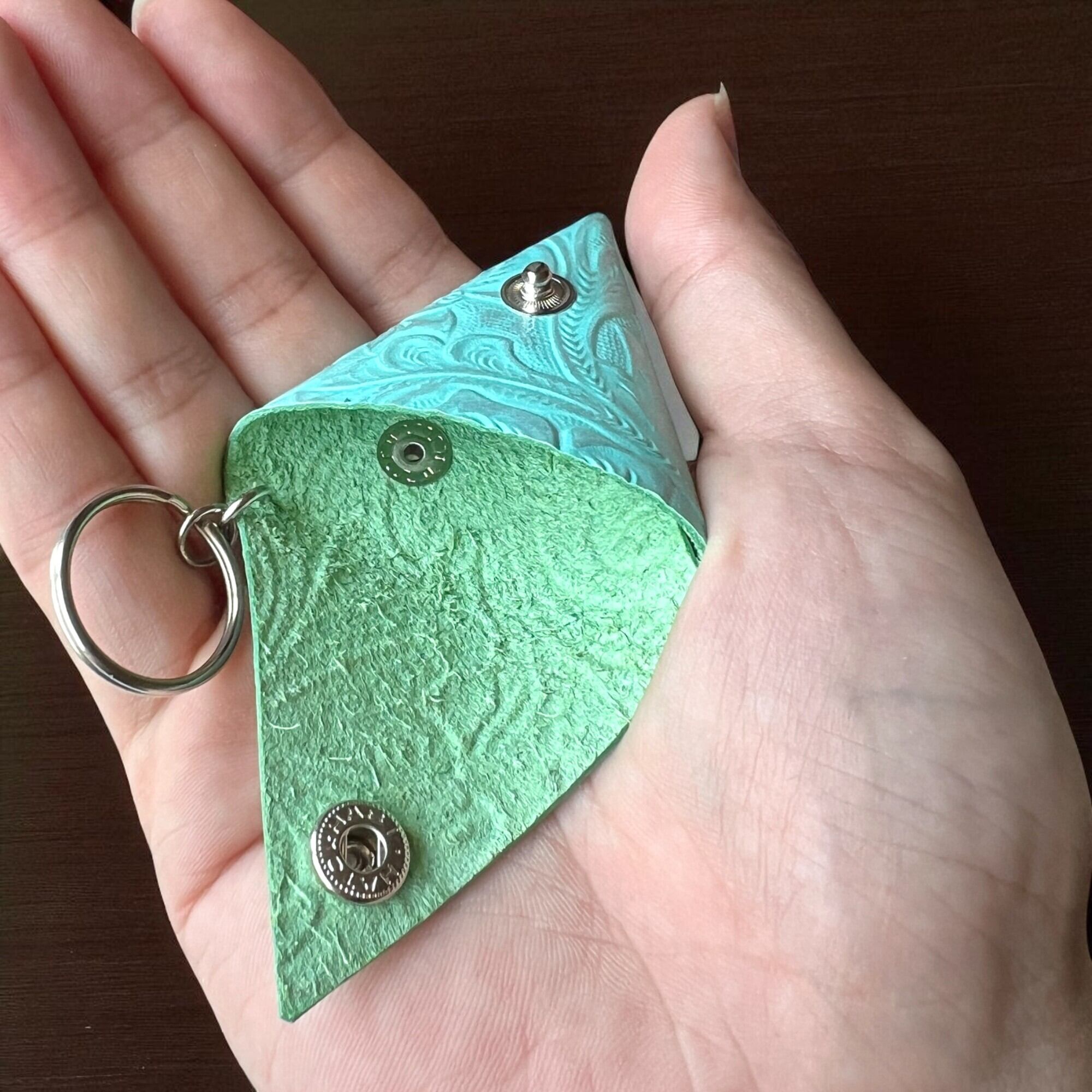 コインケースとしてはもちろん、常備薬や小物の収納にもぴったり。爽やかなカラーがアクセントとなり、持ち歩くだけで気分が明るくなります。