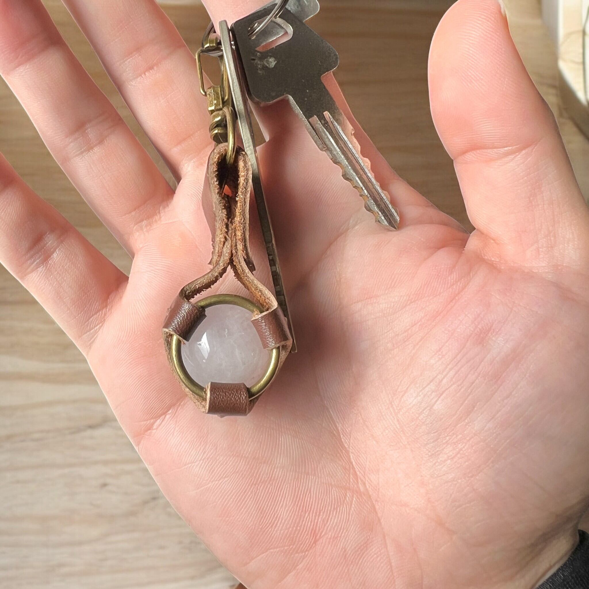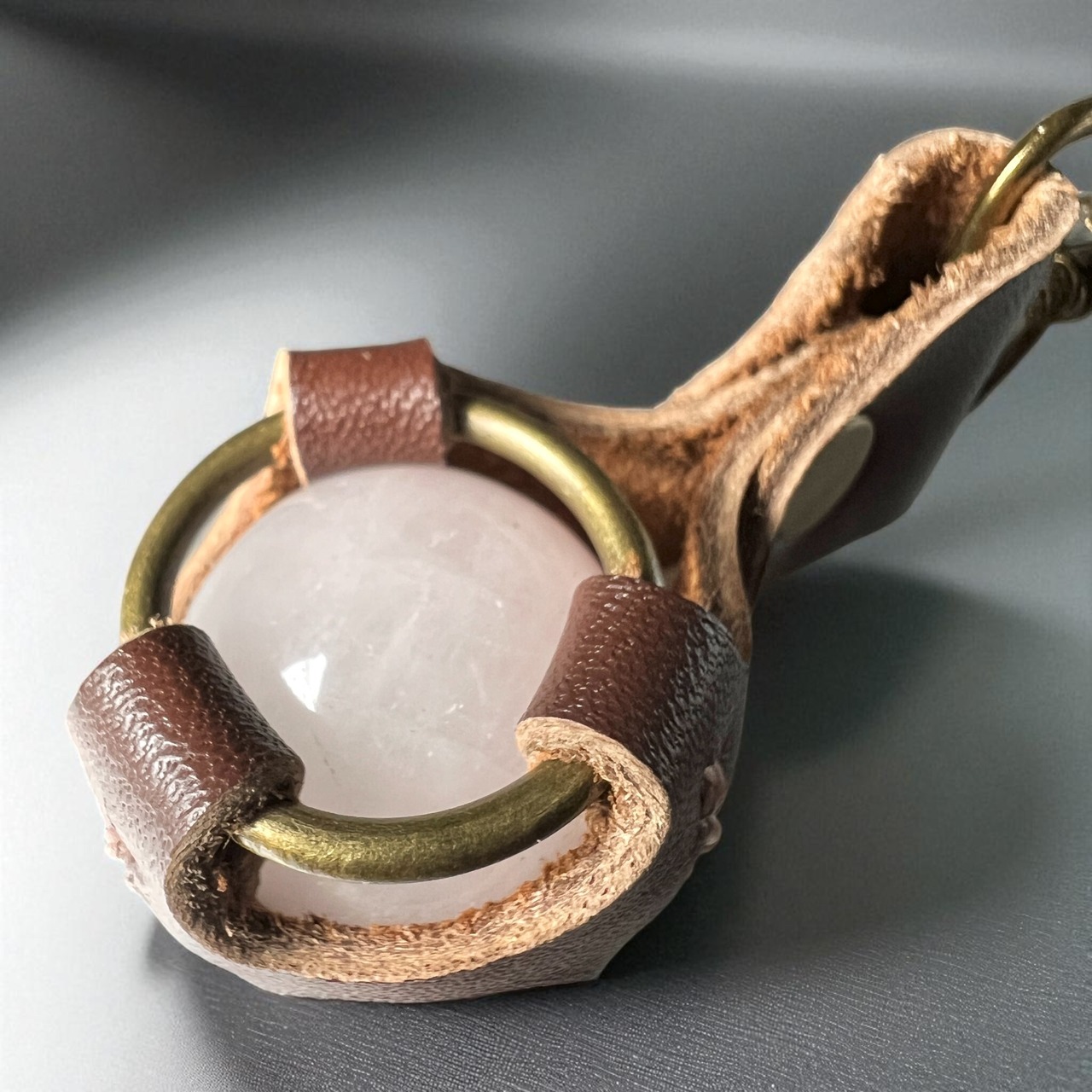 淡い桜色がやわらかに透ける、ローズクォーツのキーホルダー。
