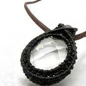 凛とした輝きを放つカット水晶を、黒のマクラメ糸で包み込んだチョーカー。