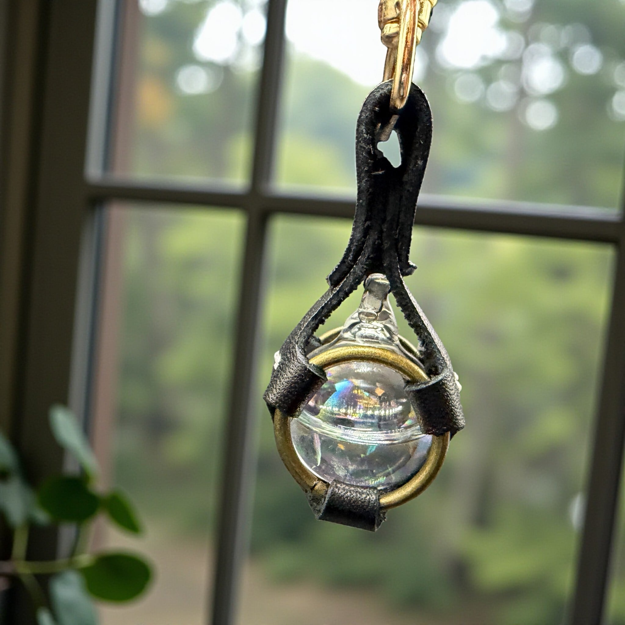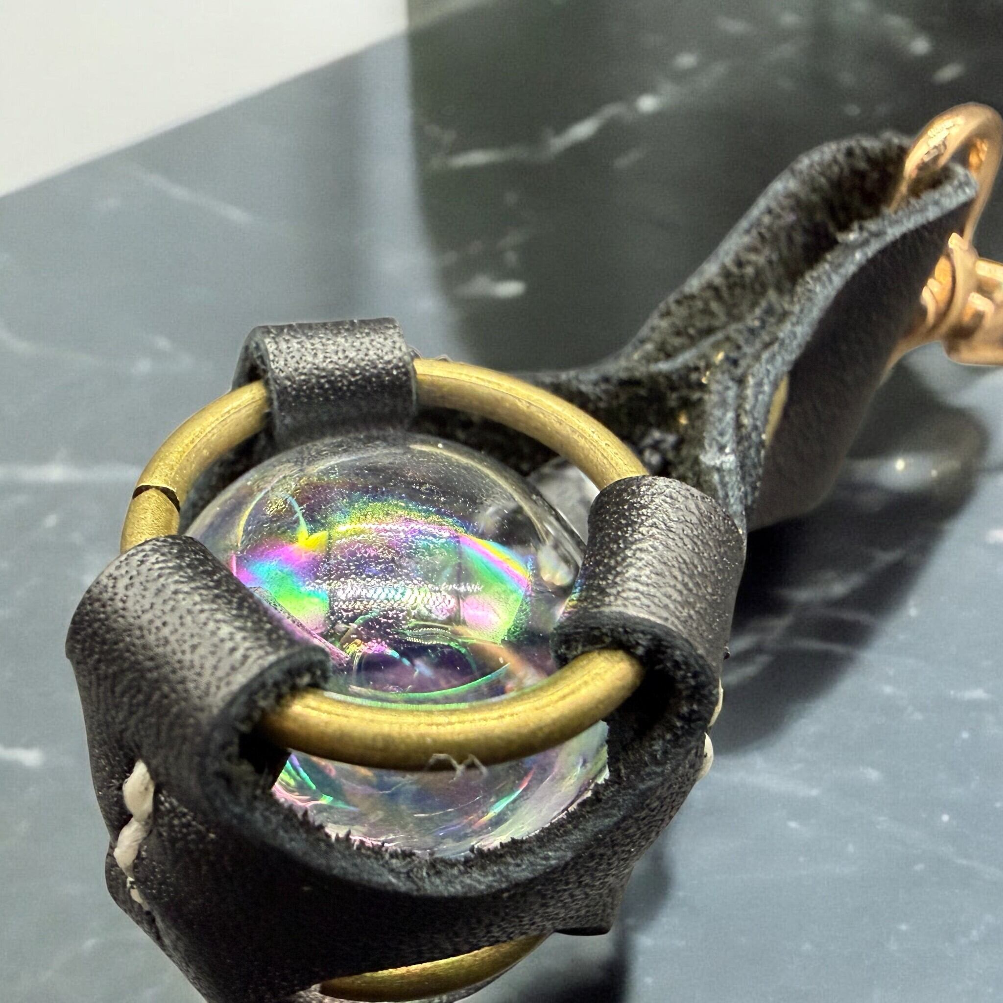 《サンキャッチャーとしても使える》レザーキーホルダーです。