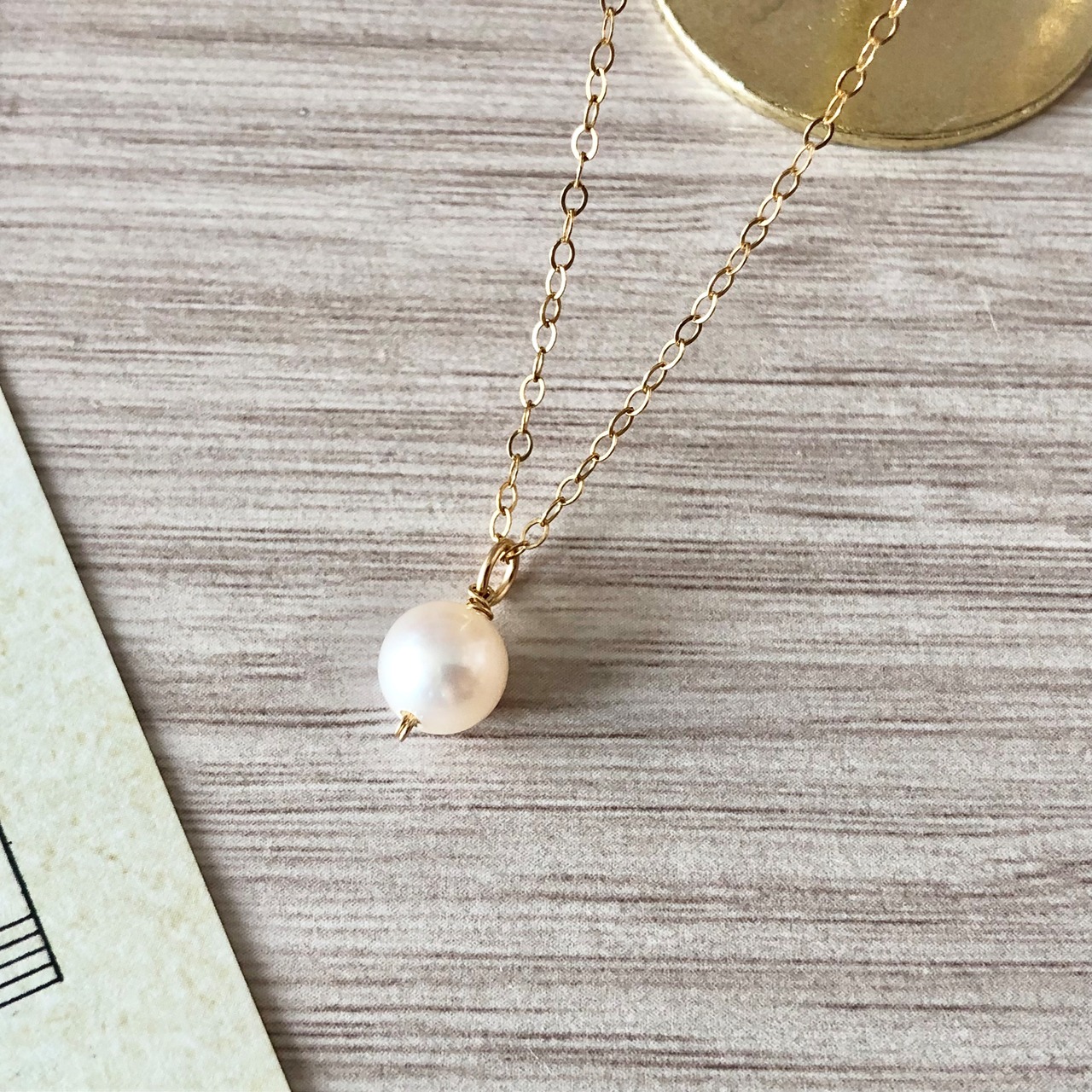 艶やかな淡水パールを14kgfチェーンにあしらった、シンプルで上品な一粒パールネックレス。