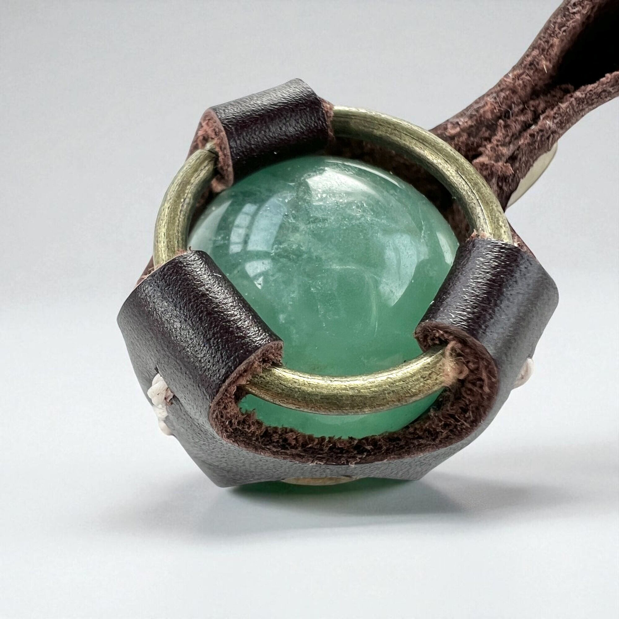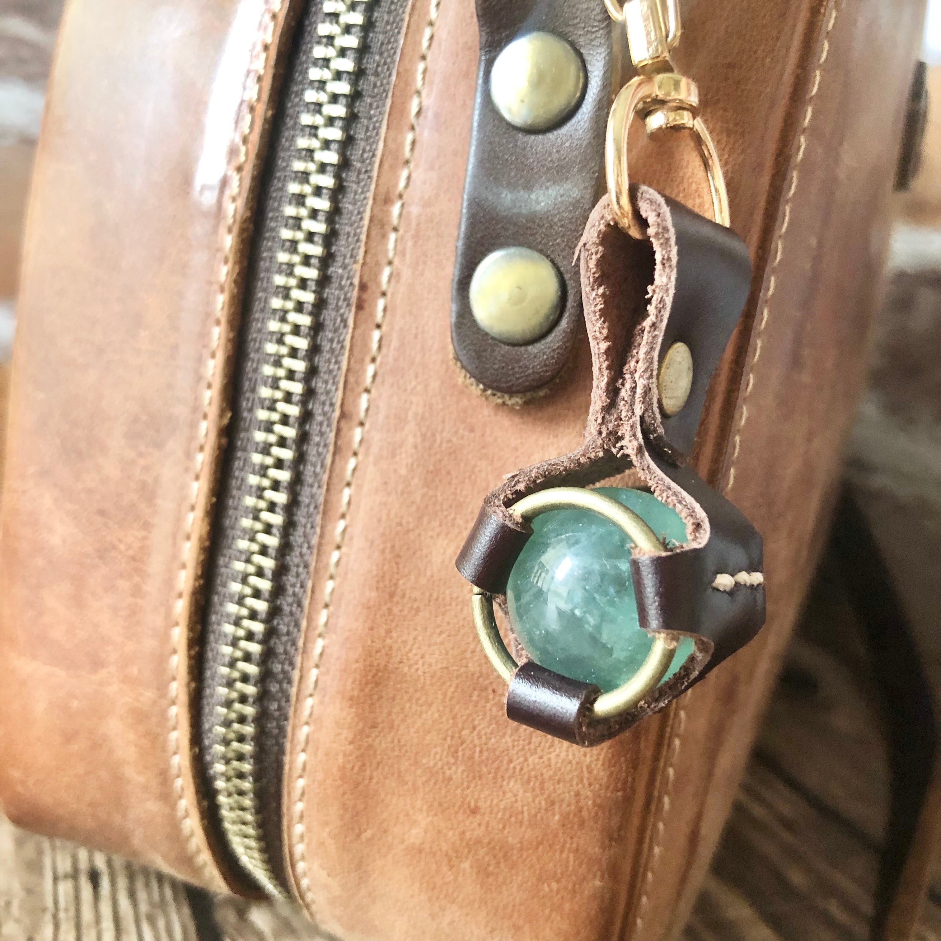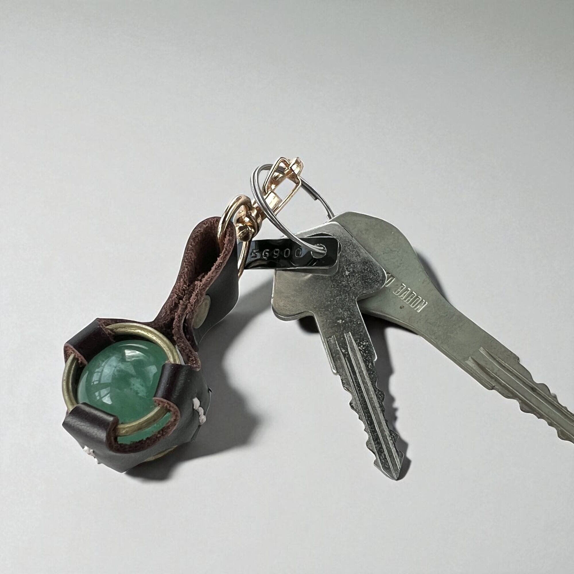 透明感のあるグリーンが心を静かに整える、天然石フローライトの本革キーホルダーです。