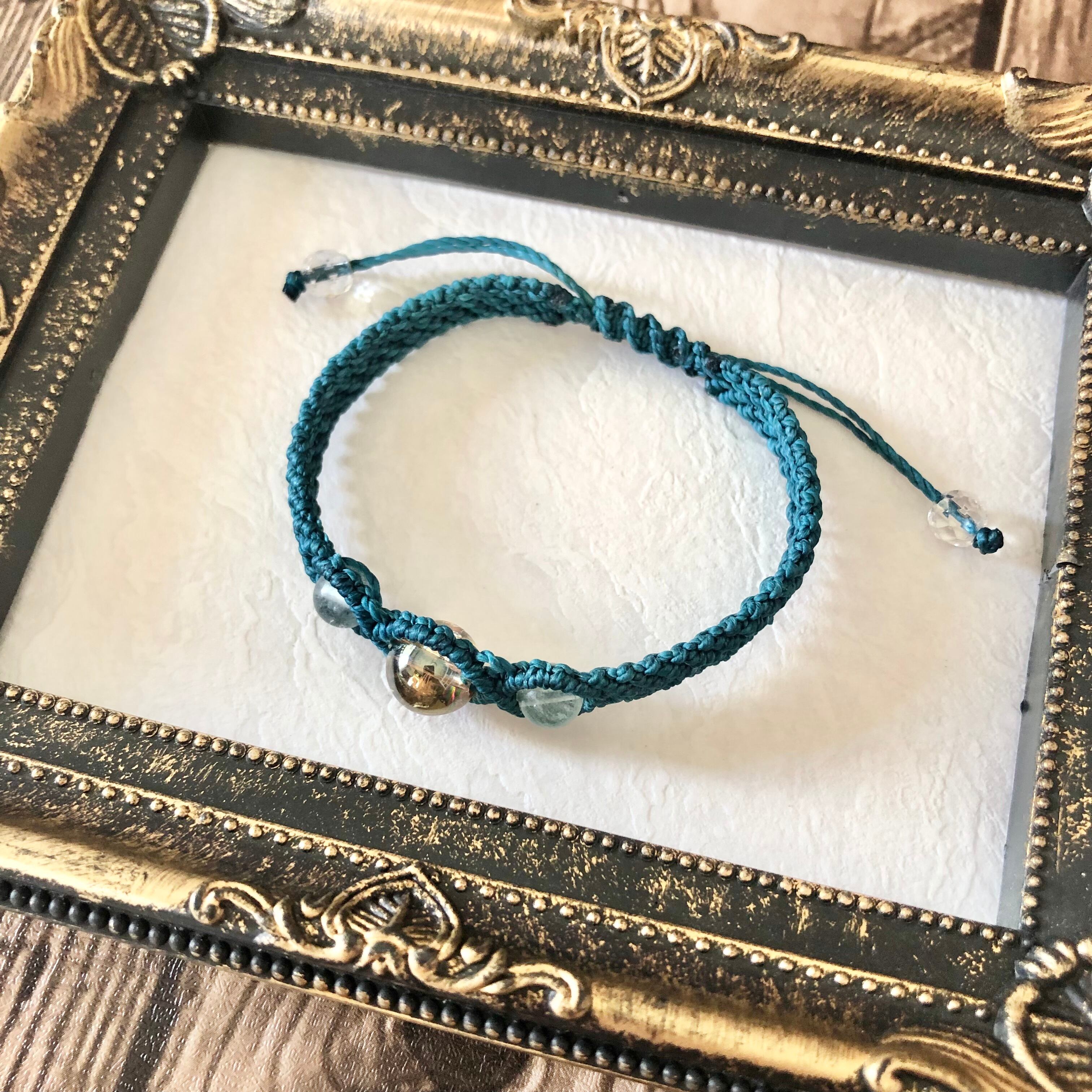 ゴールデンオーラ、フローライト、水晶を使用した、ハンドメイドのマクラメ編みブレスレットです。