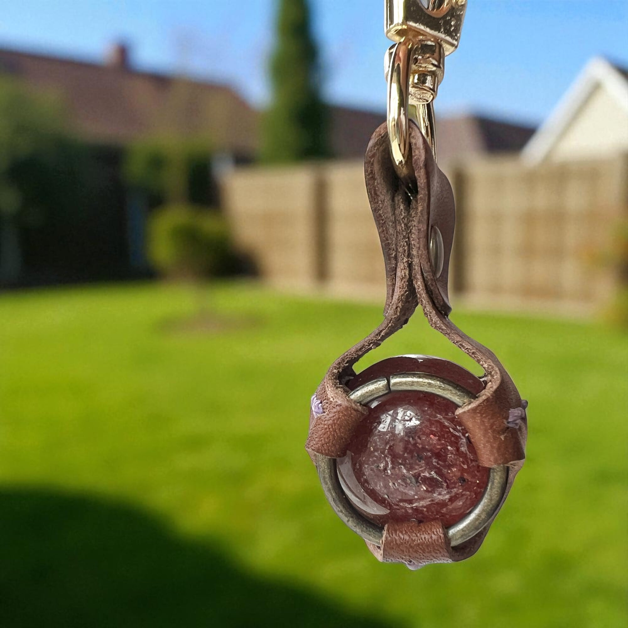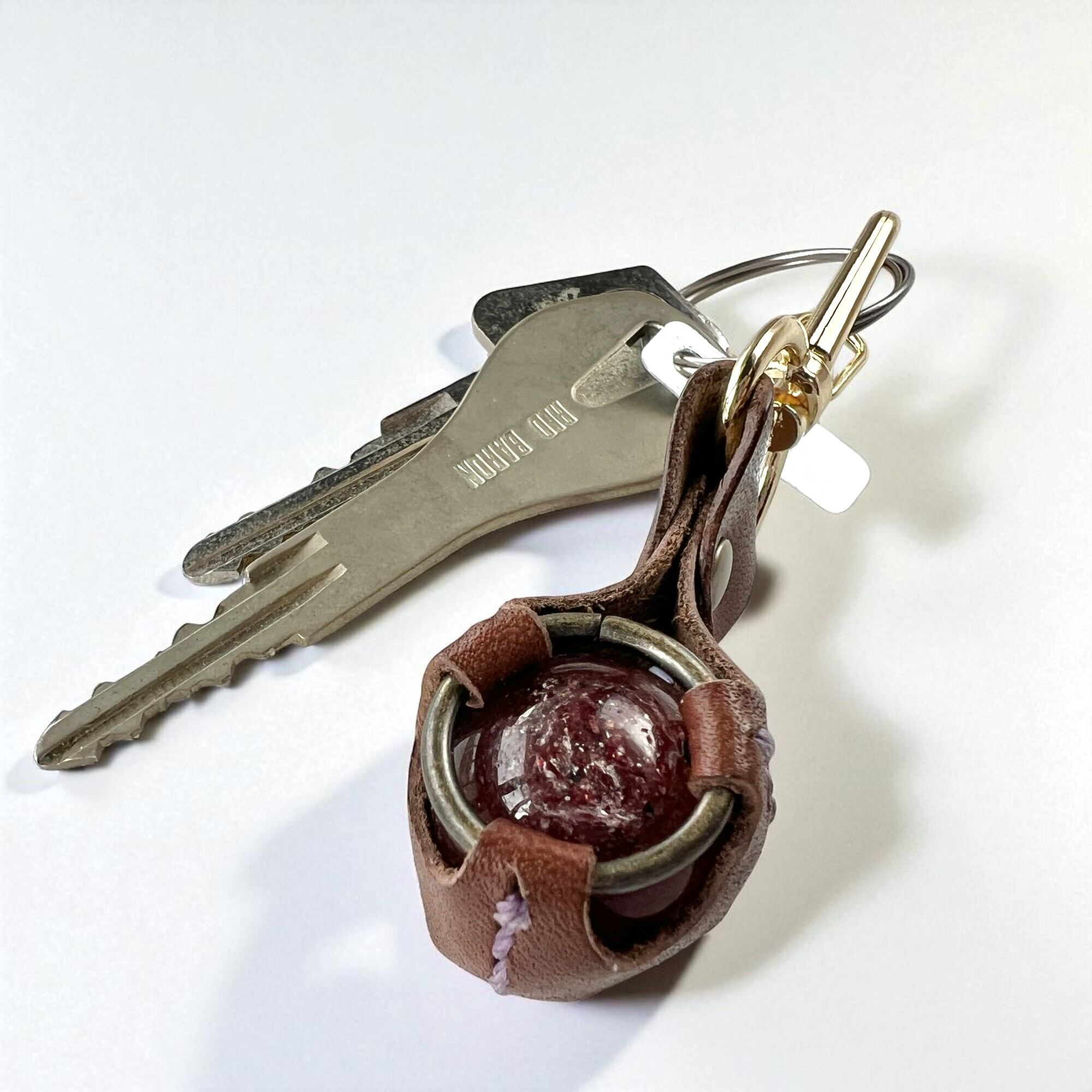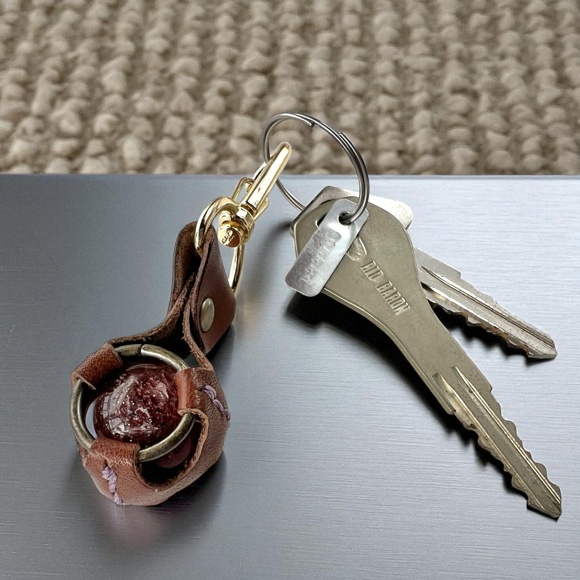 大粒のレッドアベンチュリンをレザーで包んだキーホルダーです。