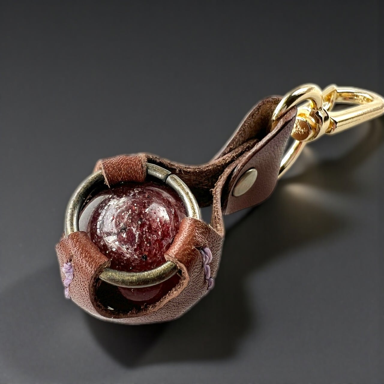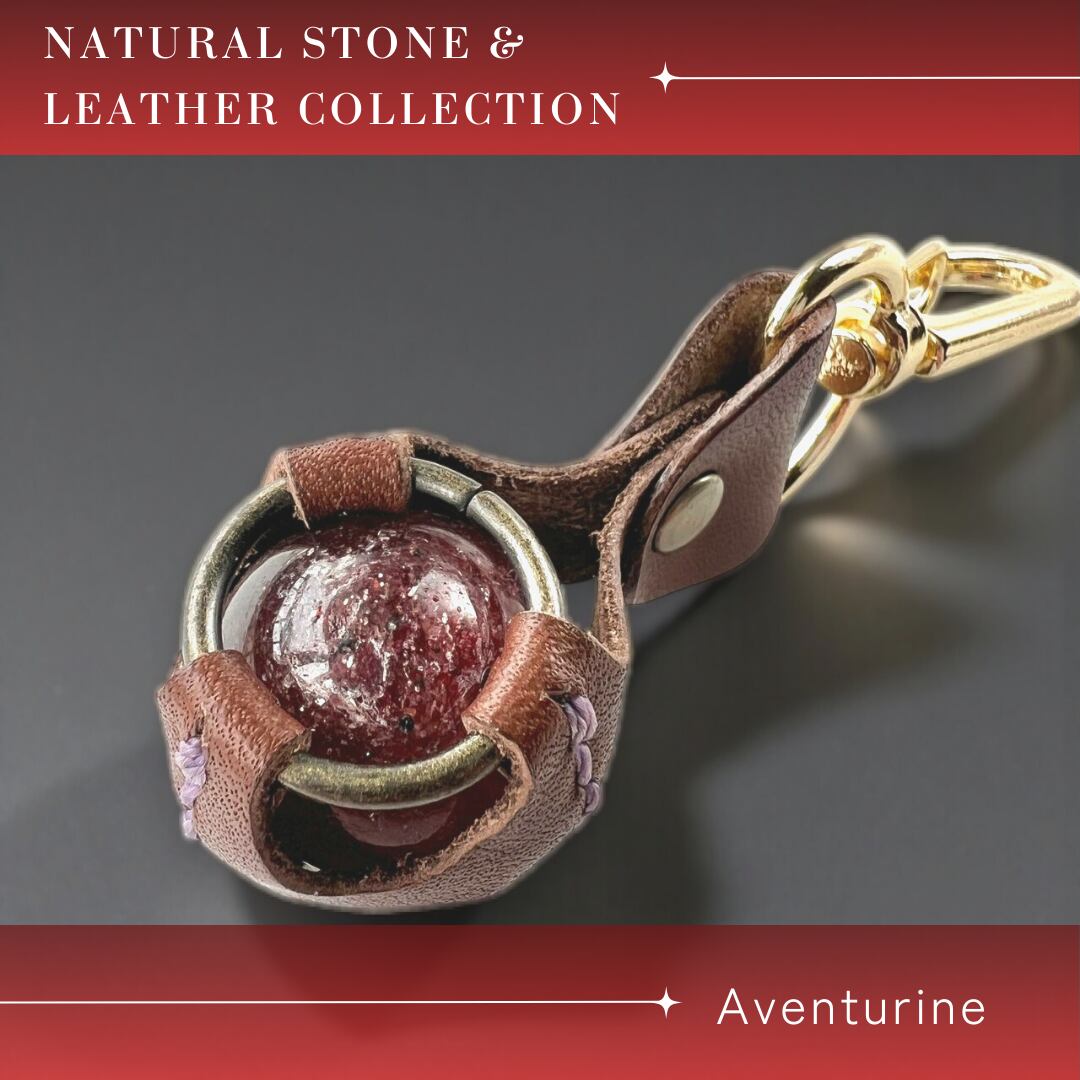 赤みのあるレッドアベンチュリンを、本革で包み込んだハンドメイドキーホルダーです。