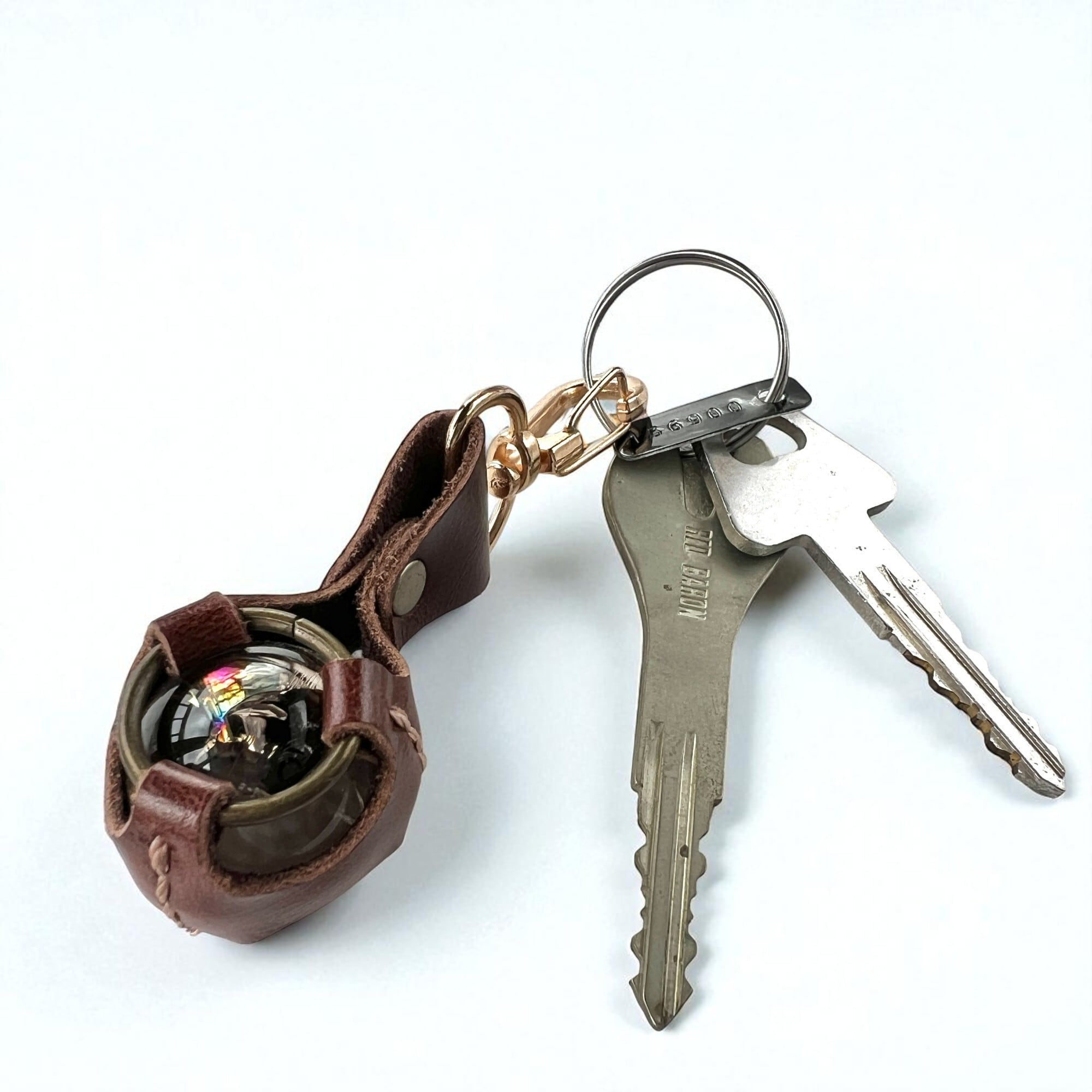 鍵やバッグに添えるだけで、落ち着いたブラウンの透明感と、瞬間的にきらめく虹を楽しめます。