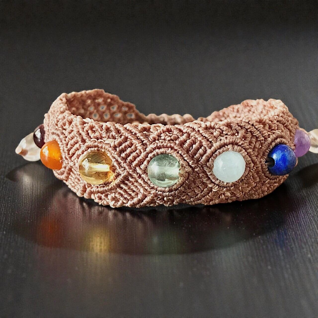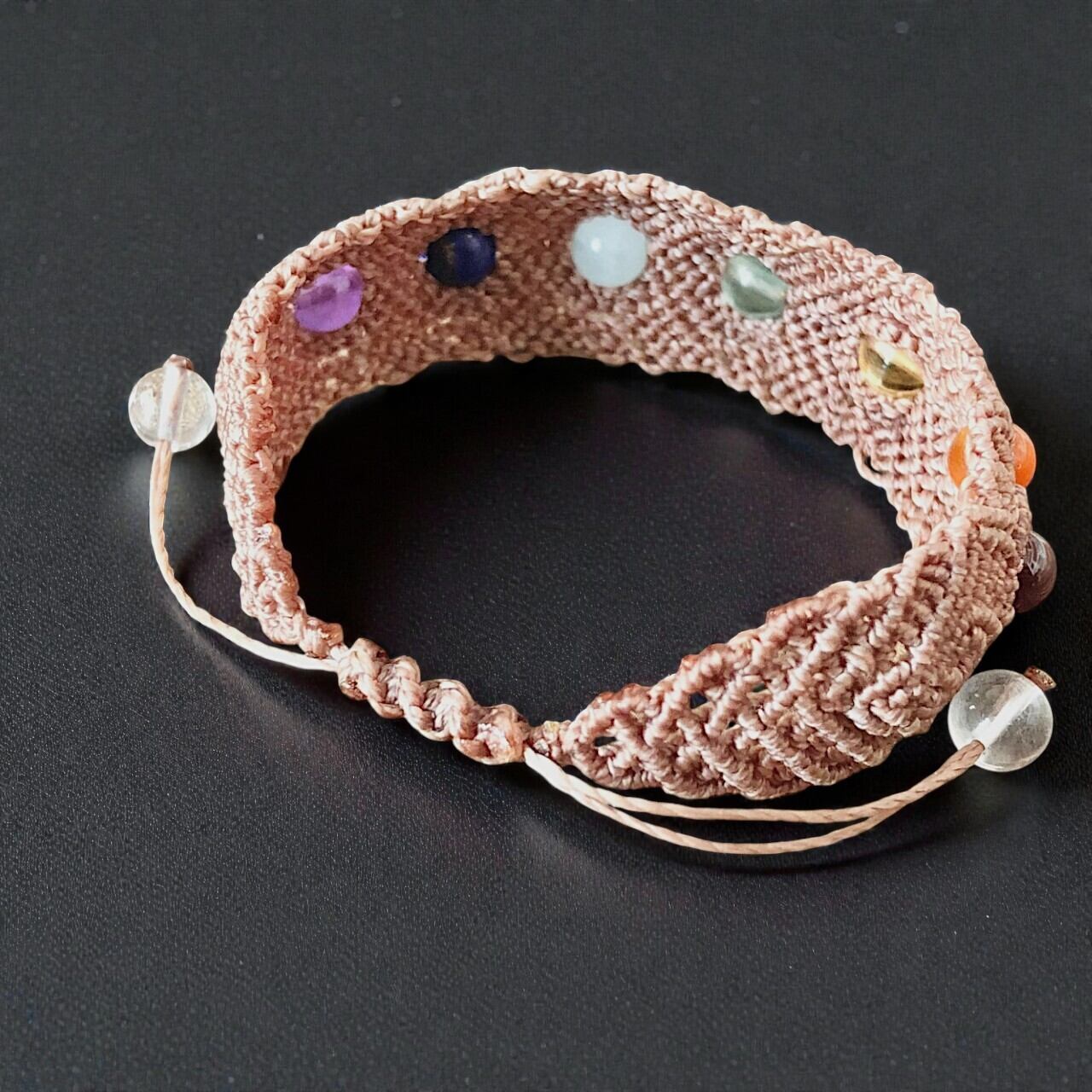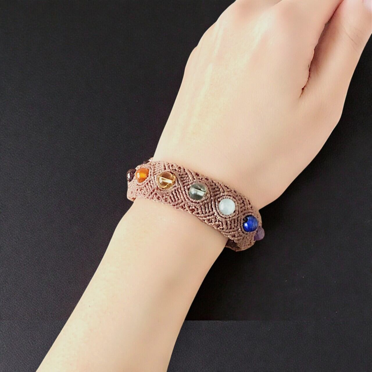 7つの天然石をひとつに編み込んだ、手編みのマクラメブレスレットです。