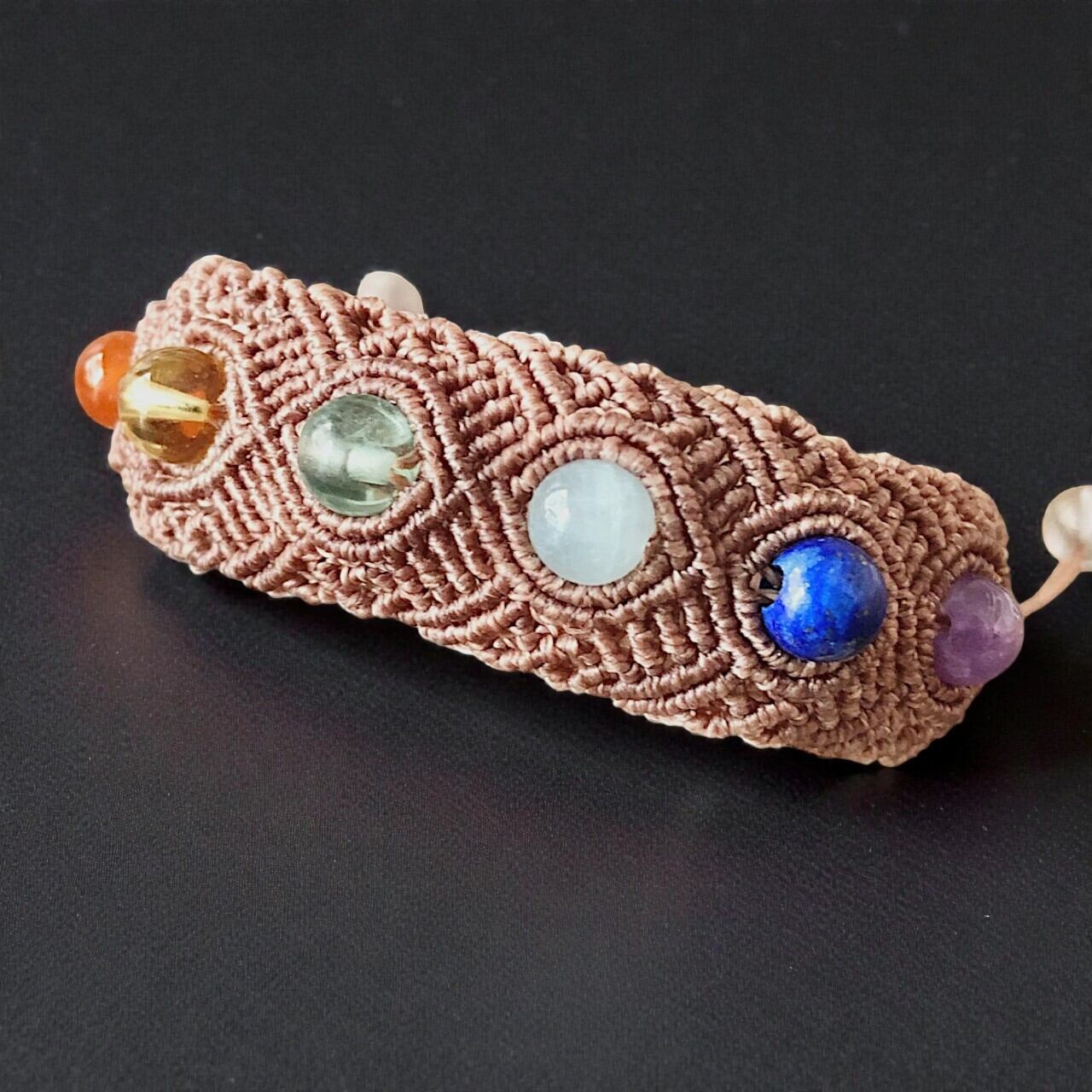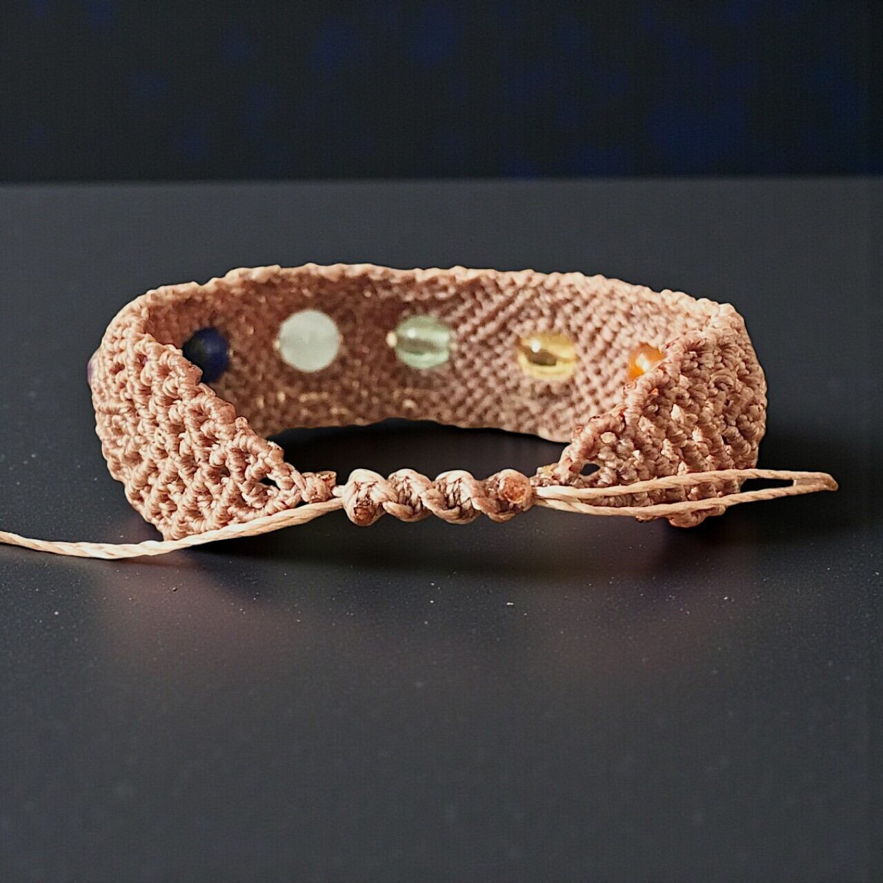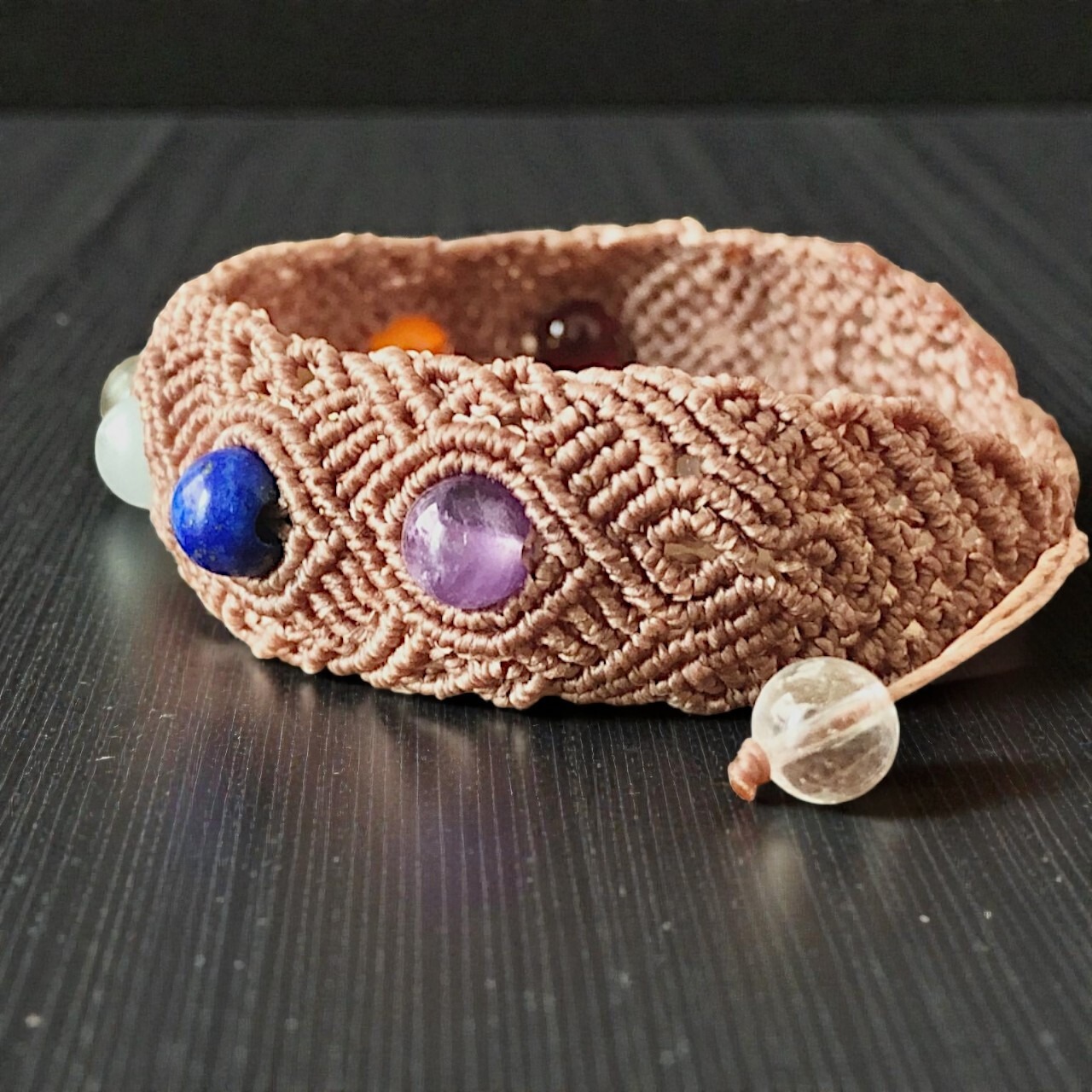 7つの天然石をひとつに編み込んだ、手編みのマクラメブレスレットです。