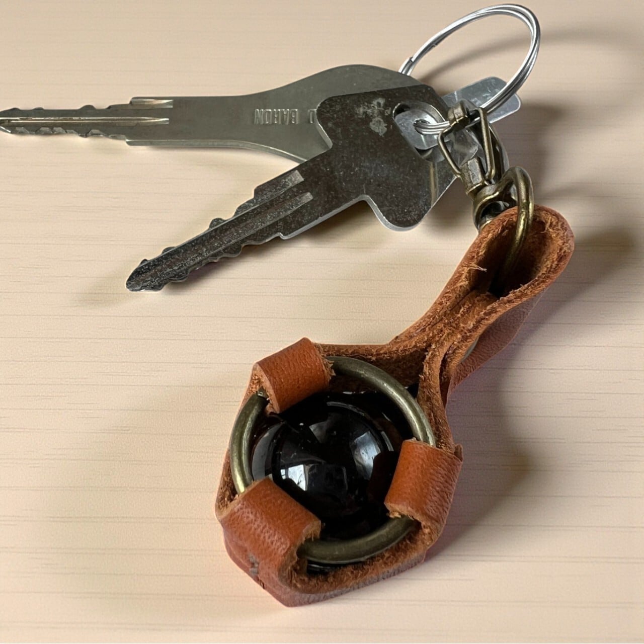 深みある大粒のガーネット天然石をレザーで包んだ、レザークラフトのキーホルダーを、お出かけのお供にいかがでしょうか。