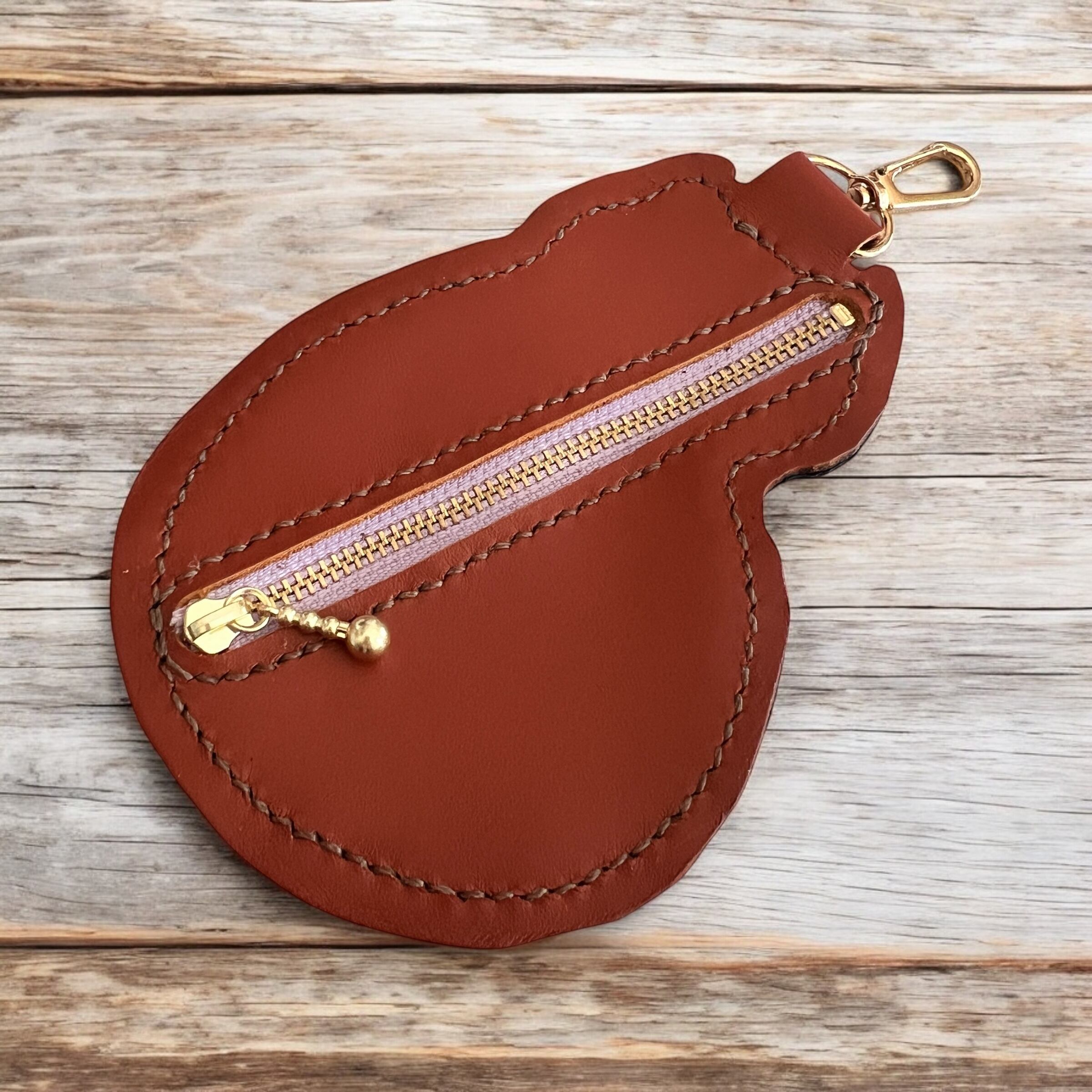 「ネコパンポーチ」は、使い込むほど味わいが増すヌメ革を使用した立体的な猫の形のポーチです。
