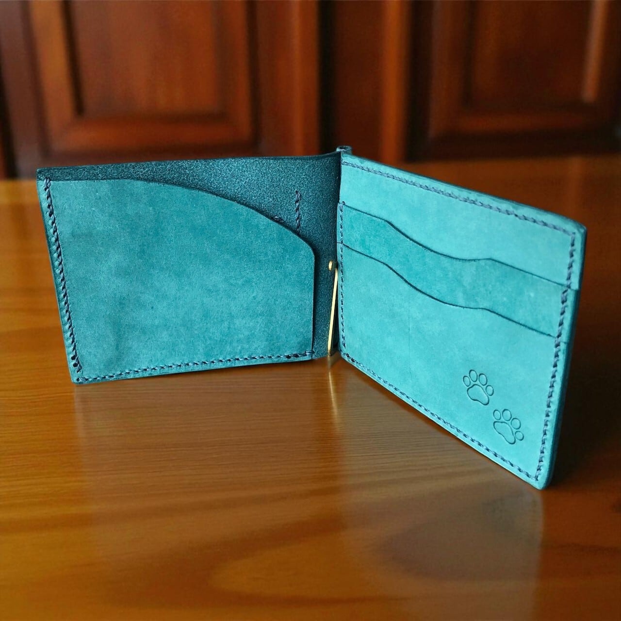 上質なイタリアンレザー – エイジングを楽しむ本革マネークリップ-ターコイズブルー【送料無料】[P-112W]